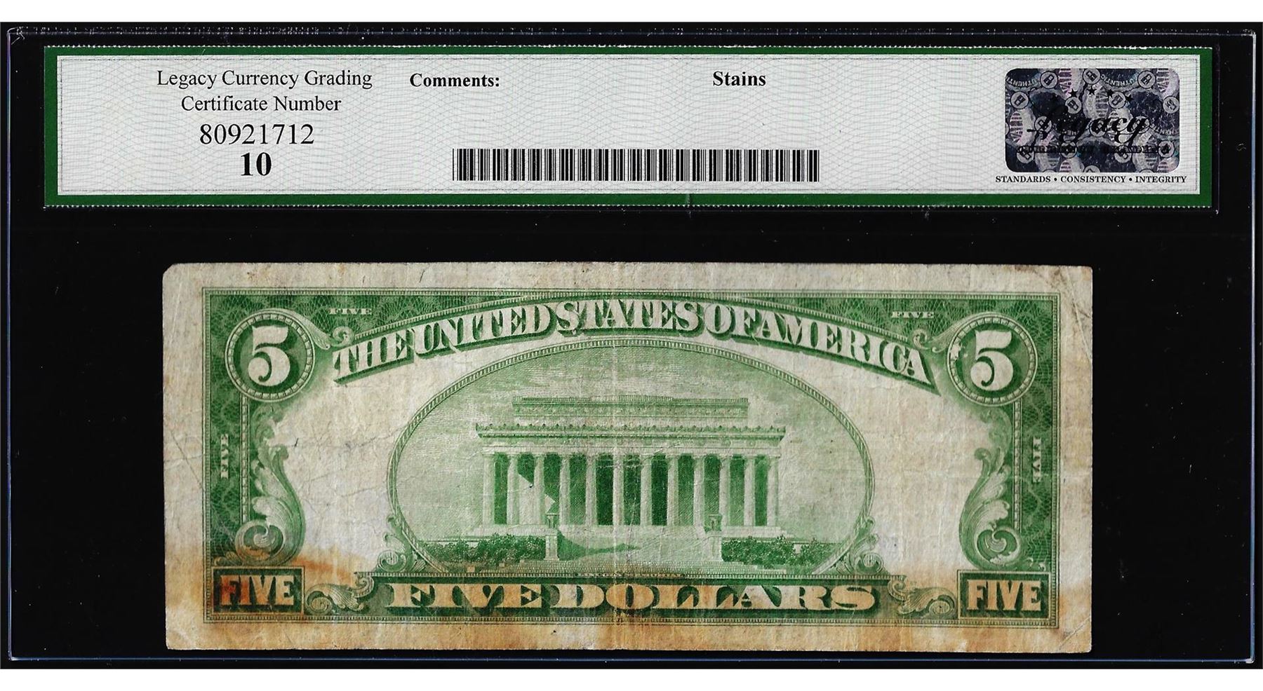 One 1929 $5 NB New Haven, CT CH# 1202 National Currency Note Legacy Very Good 10. Legacy Graded.