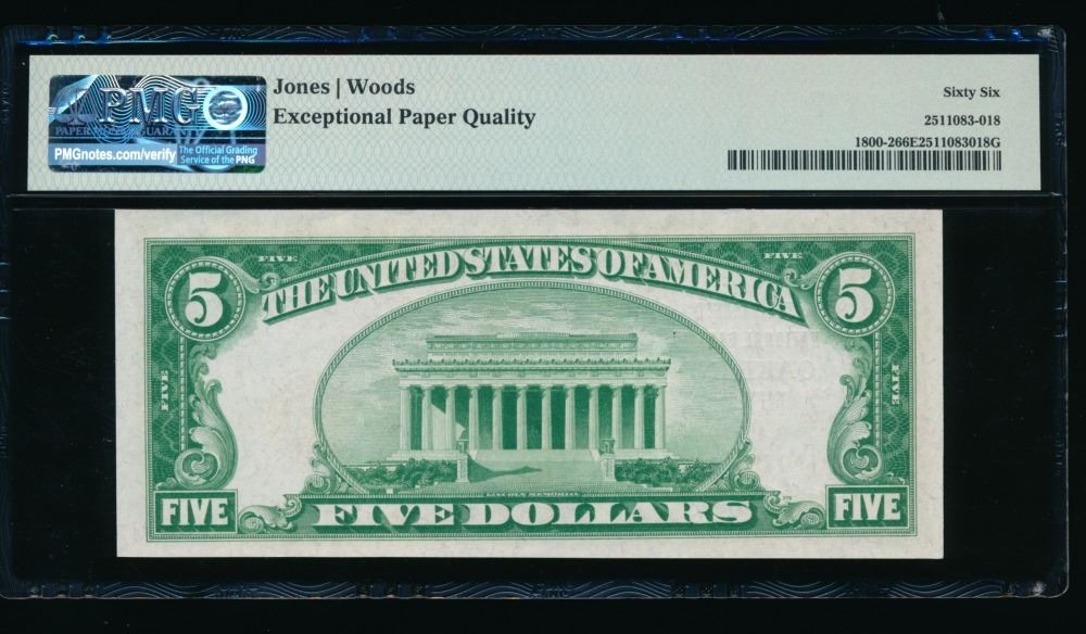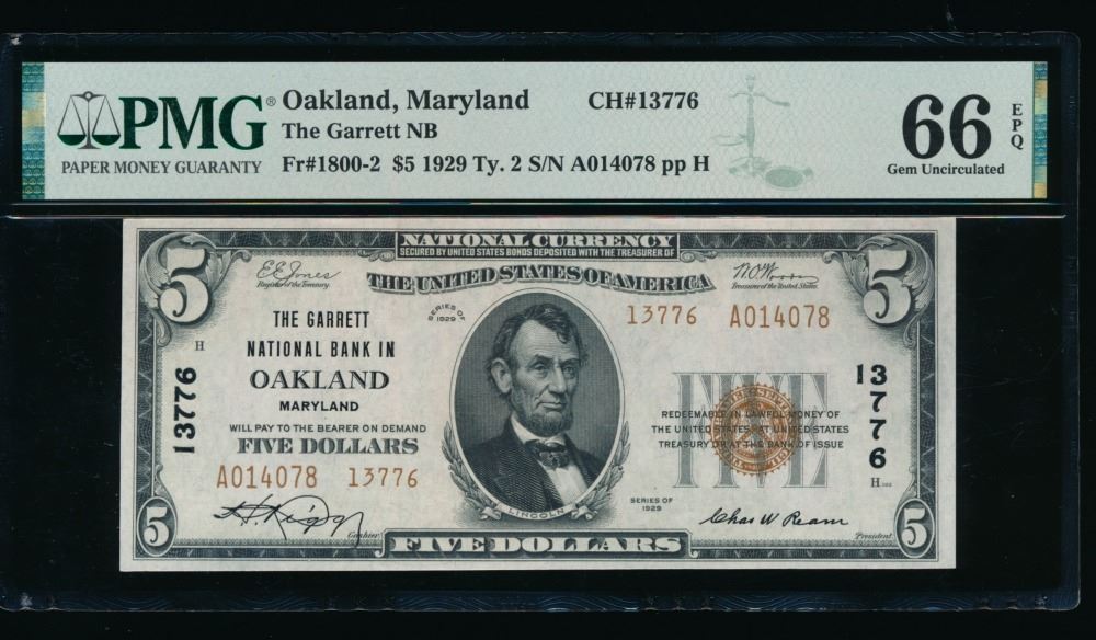 One 1929 $5 Oakland MD National PMG 66EPQ .