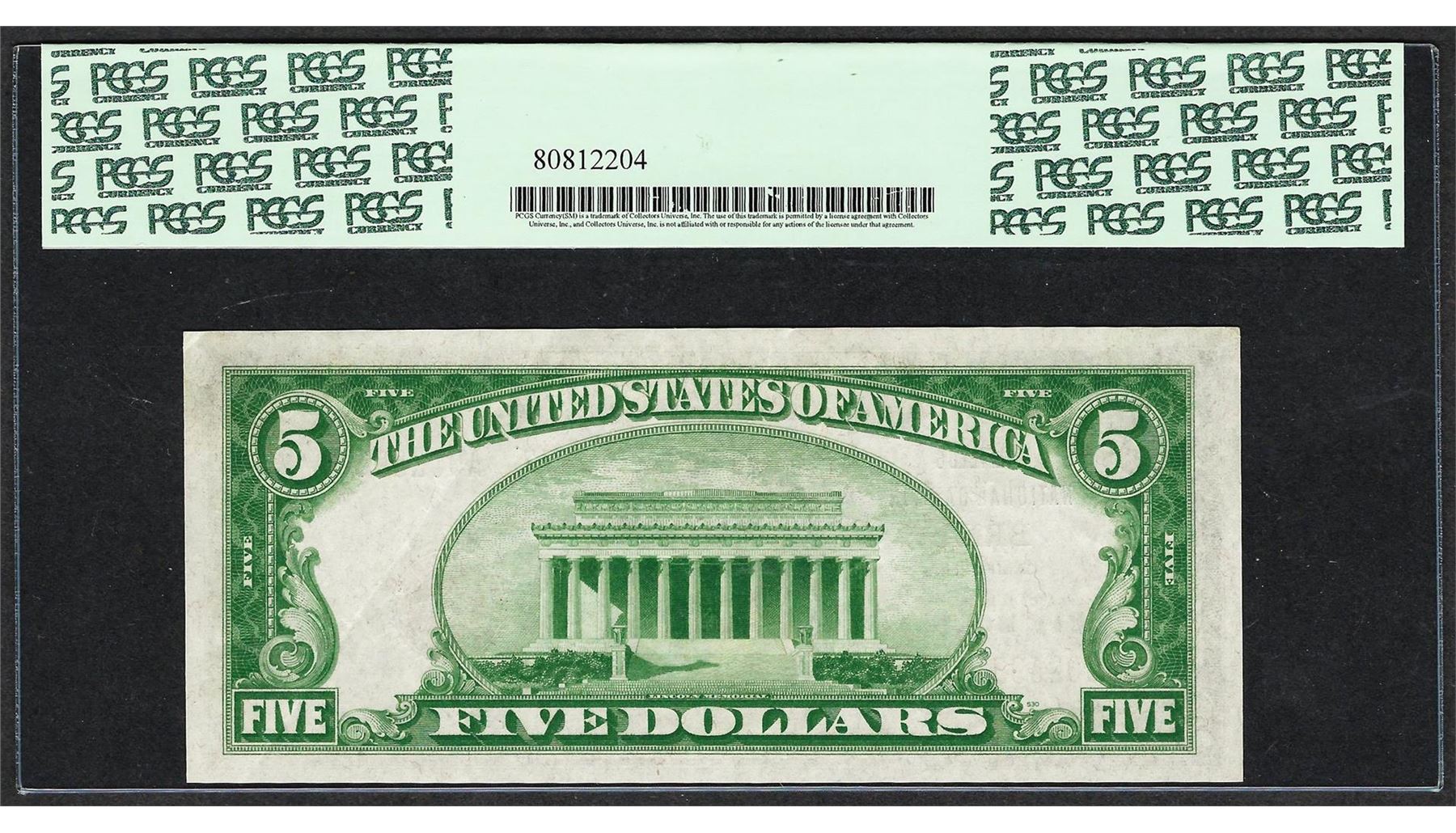 Any coins sold referencing a third-party grading service are sold AS IS without any express or implied warranty. Notes sold referencing a third-party grading service are sold AS IS without any express or implied warranty. Grading, condition or other attributes of any lot may have a material effect on its value, and the opinion of others, including third-party grading services may differ with that of BKA. BKA shall not be bound by any prior or subsequent opinion, determination, or certification by any grading service. Bidder specifically waives any claim to right of return of any item because of the opinion, determination, or certification, or lack thereof, by any grading services. Third-party graded notes are not returnable for any reason whatsoever.