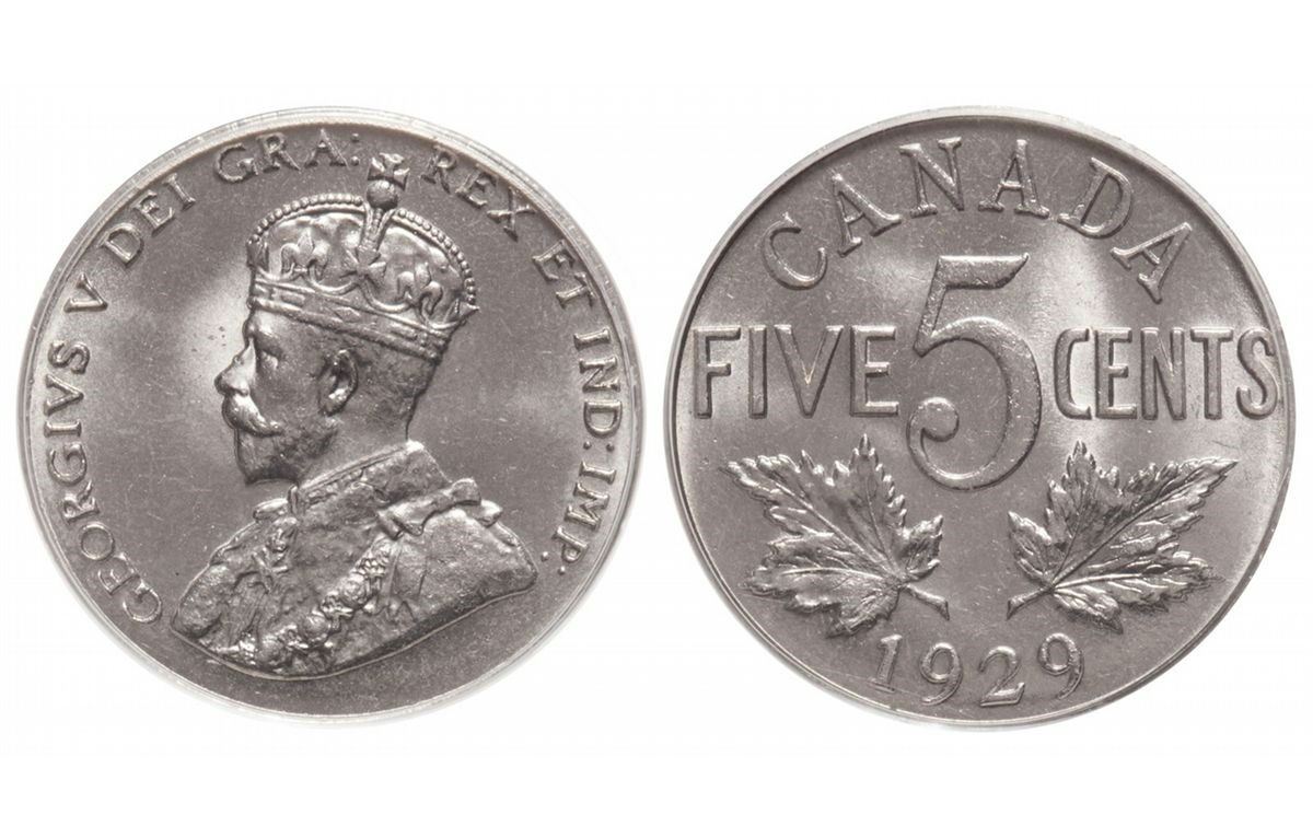 1929 5¢ PCGS/ICCS MS65. The coin has full original lustre. The best of the best. An absolute gem of a coin.