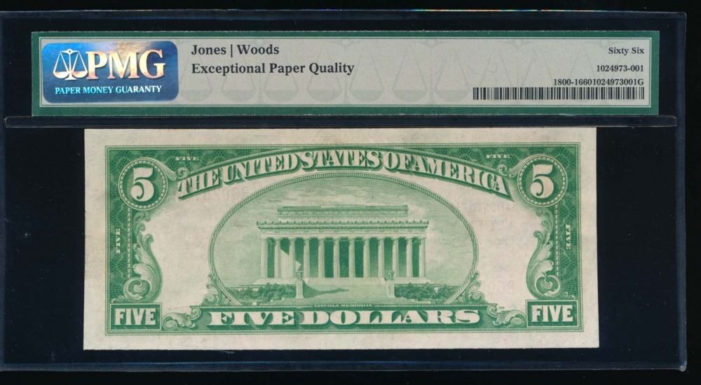 One 1929 $5 Pennsylvania National Bank Note PMG 66EPQ.