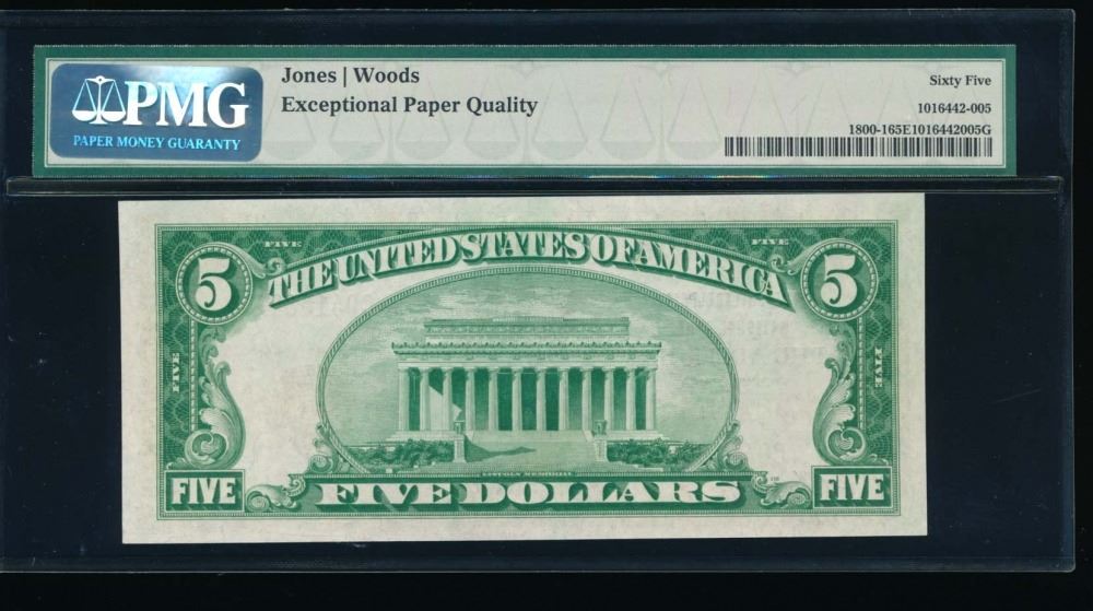 One 1929 $5 Philadelphia National Bank Note PMG 65EPQ.