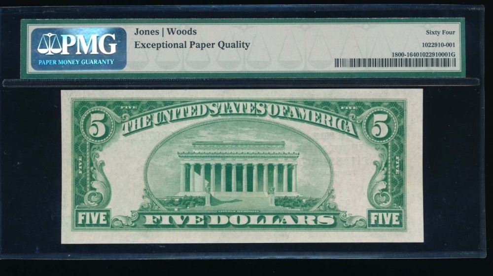 One 1929 $5 Pittsburgh National Bank Note PMG 64EPQ.