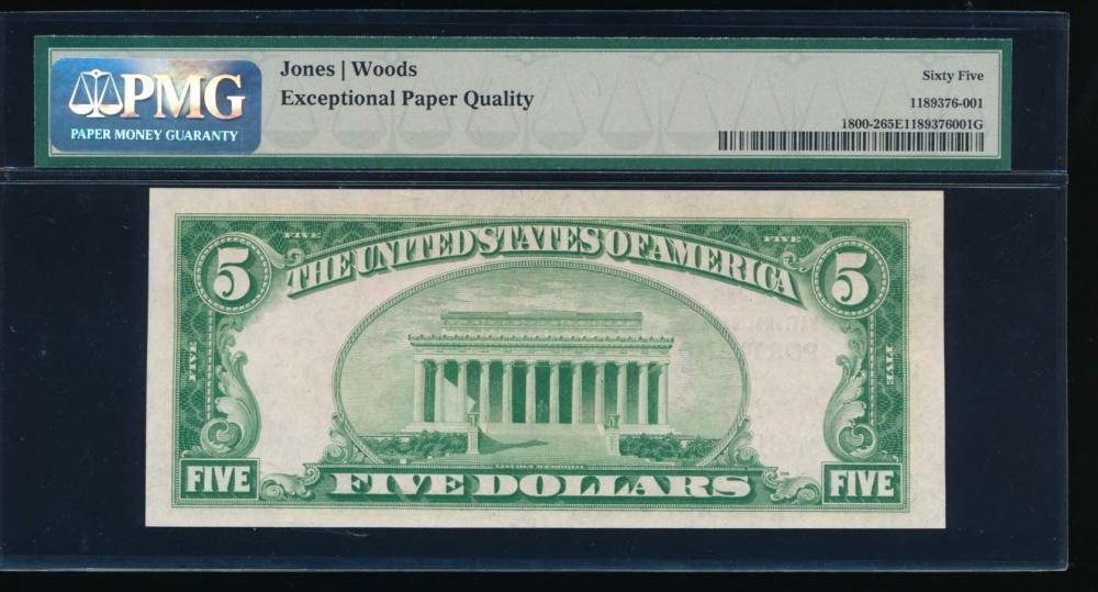 One 1929 $5 Portland ME National PMG 65EPQ.