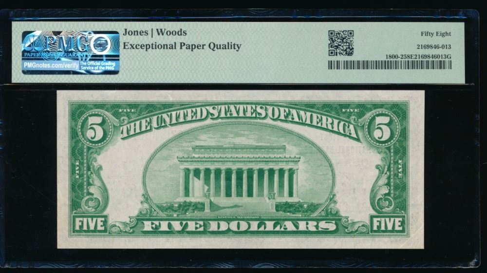 One 1929 $5 Quantico VA National PMG 58EPQ.
