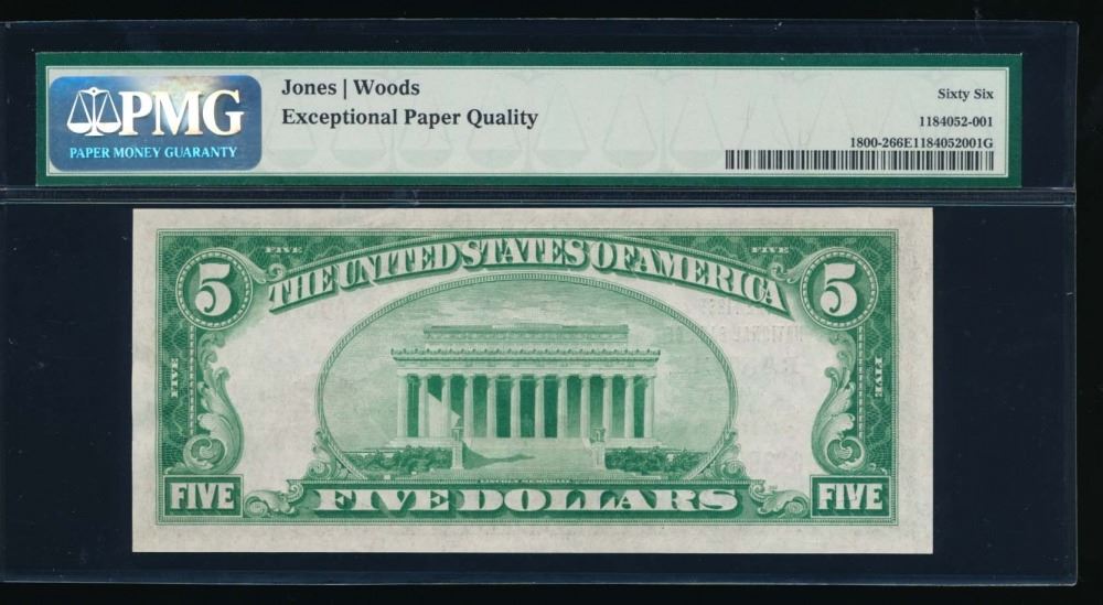 One 1929 $5 Rantoul National Bank Note PMG 66EPQ.