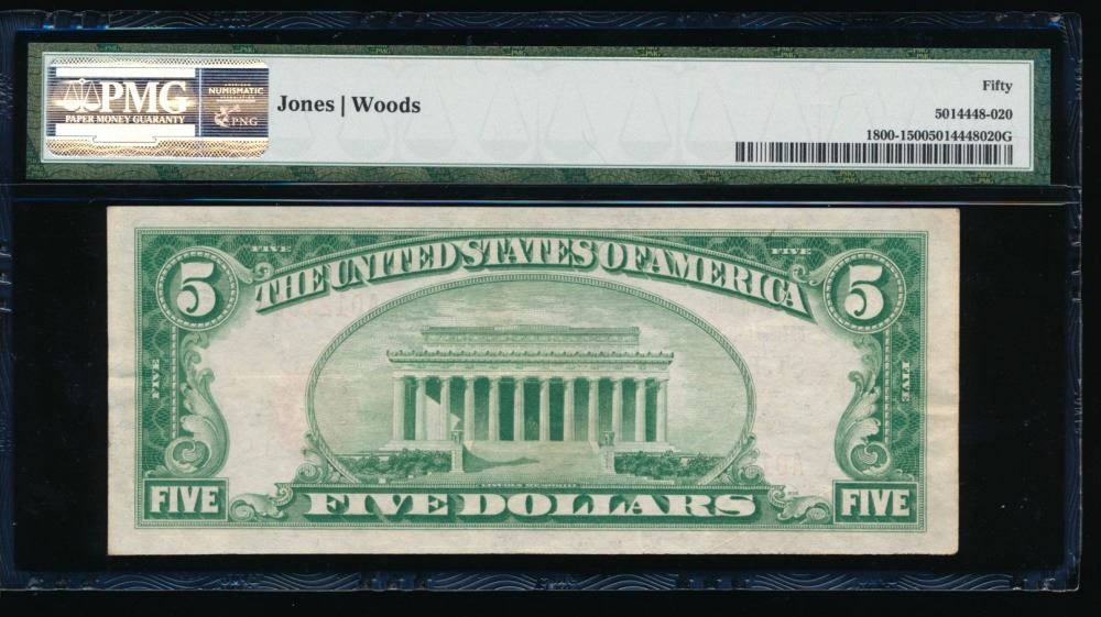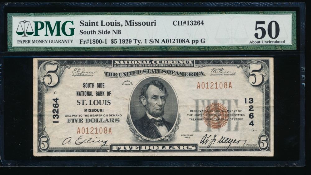 One 1929 $5 St Louis Mo National Bank Note PMG 50.