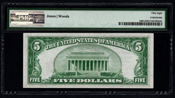 One 1929 $5 Wheeling National Bank Note PMG 58.