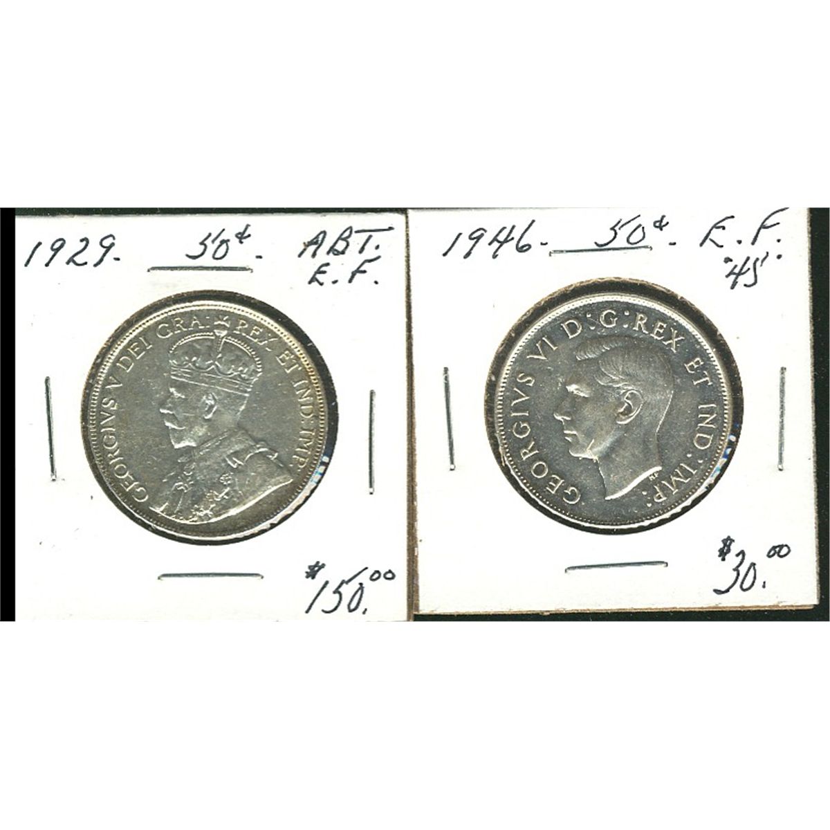 1929 50¢ & 1946 Abt EF. Lot of 2 coins. (PBA).