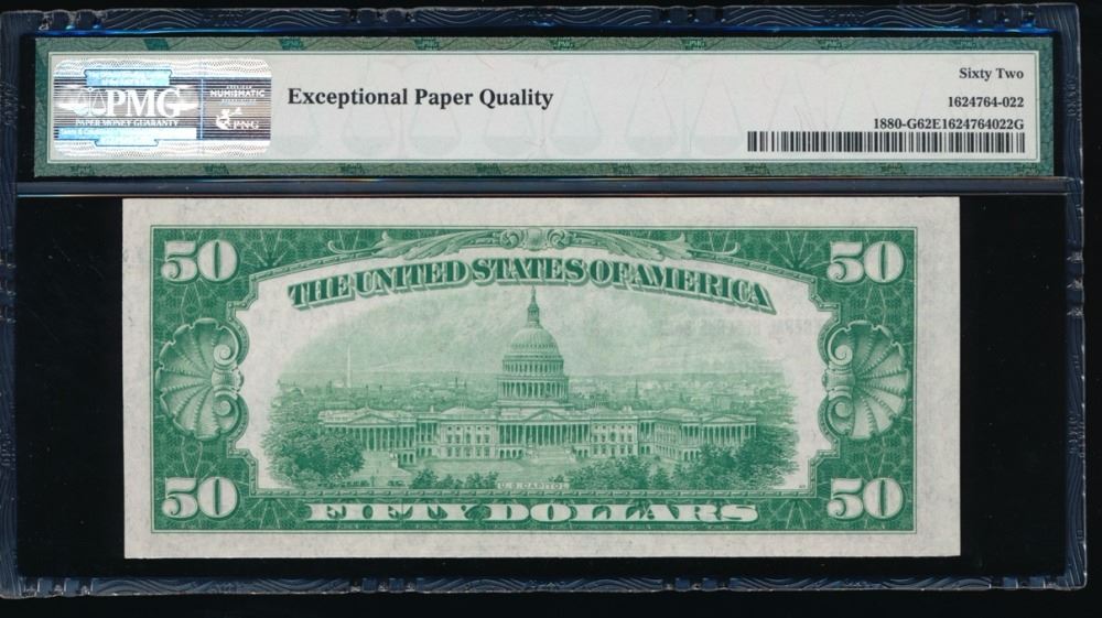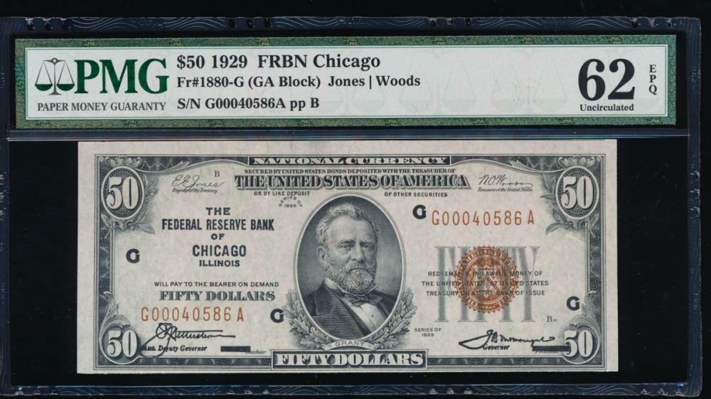 One 1929 $50 Chicago Federal Reserve Bank Note PCGS 62EPQ.