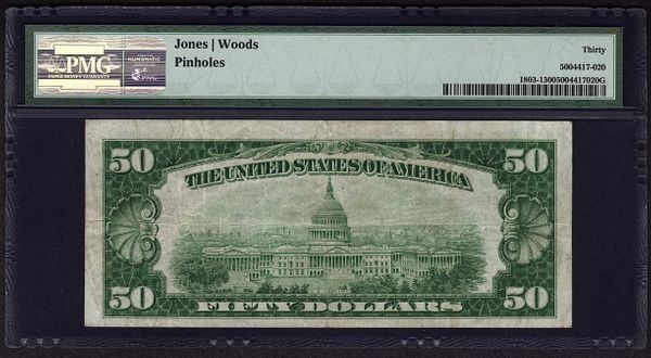One 1929 $50 Detroit National Bank Note PMG 30.