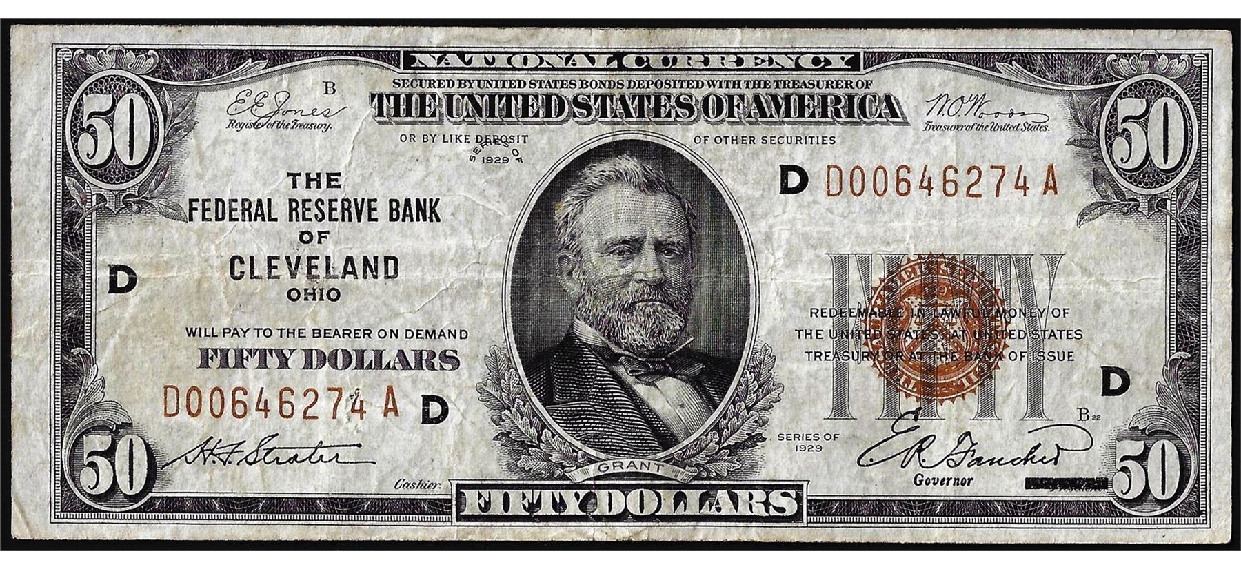 One 1929 $50 Federal Reserve Bank Note Cleveland.