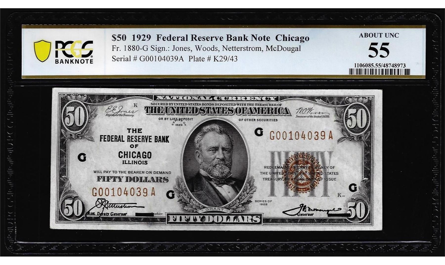 1929 $50 Federal Reserve Bank Note of Chicago Fr.1880-G PCGS About Uncirculated 55