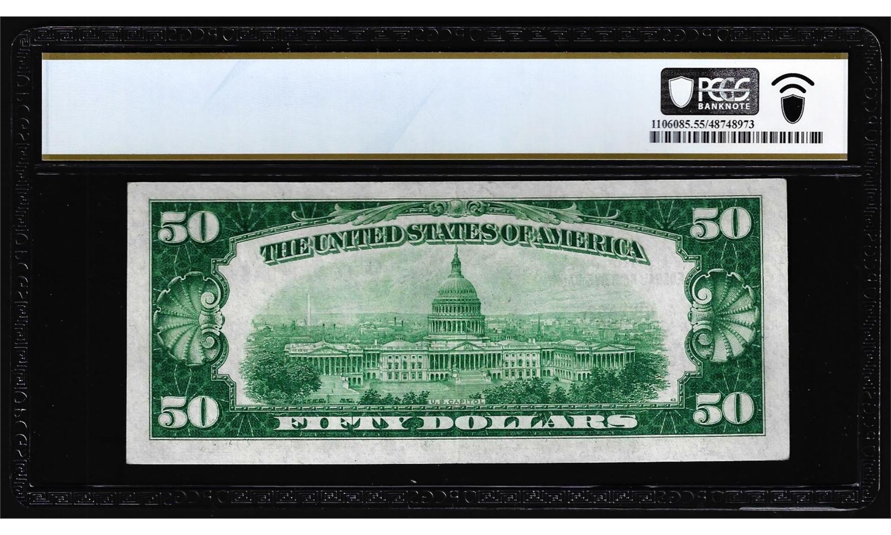 One 1929 $50 Federal Reserve Bank Note of Chicago Fr.1880-G PCGS About Uncirculated 55. PCGS Graded.