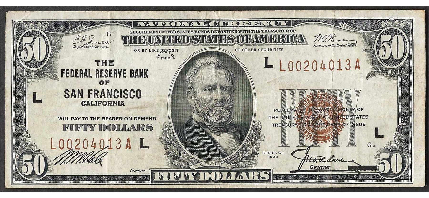 One 1929 $50 Federal Reserve Bank of San Francisco Note.