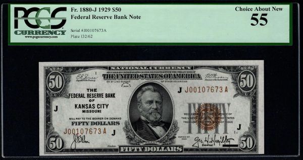 One 1929 $50 Kansas City Federal Reserve Bank Note PGCS 55.