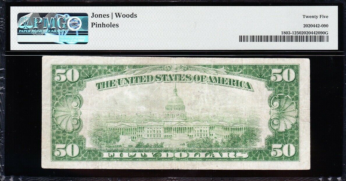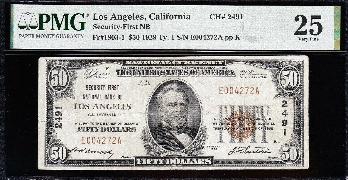 One 1929 $50 Los Angeles CA National PMG 25.
