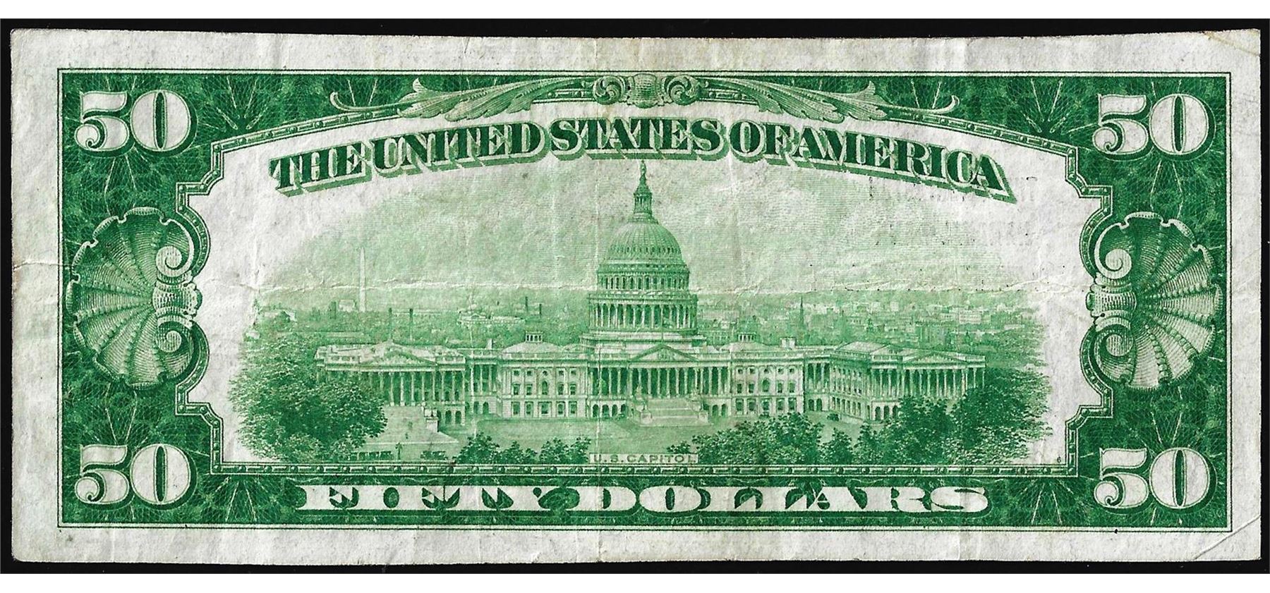 One 1929 $50 NB of Washington, District of Columbia CH# 2043 National Currency Note.