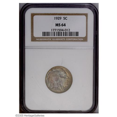1929 5C MS64 NGC. Bright, lustrous surfaces display va 1929[5C] MS64 NGC.