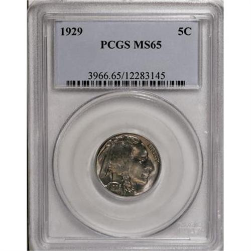 <B>1929 5C MS65 PCGS.</B></I> . PCGS Population (457/121). NGC Census: (235/34). Mintage: 36,446,000. Numismedia Wsl. Price for NGC/PCGS coin in MS65: $280. (#3966)<BR><BR><B>Coin Engraver:</B> James E. Fraser<BR><BR><b>Shipping:</b> Coins & Currency (<a target="_blank" href="http://www.heritageauctions.com/common/shipping.php">view shipping information</a>)