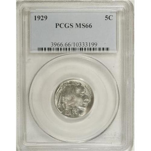 <B>1929 5C MS66 PCGS.</B></I> Shimmering luster bathes this lovely gunmetal-gray Premium Gem. The strike is good for the type, and only trivial marks are detected. The fields possess an orange-peel texture, as provided by long-used dies. <BR><BR><b>Shipping:</b> Coins & Currency (<a target="_blank" href="http://www.heritageauctions.com/common/shipping.php">view shipping information</a>)