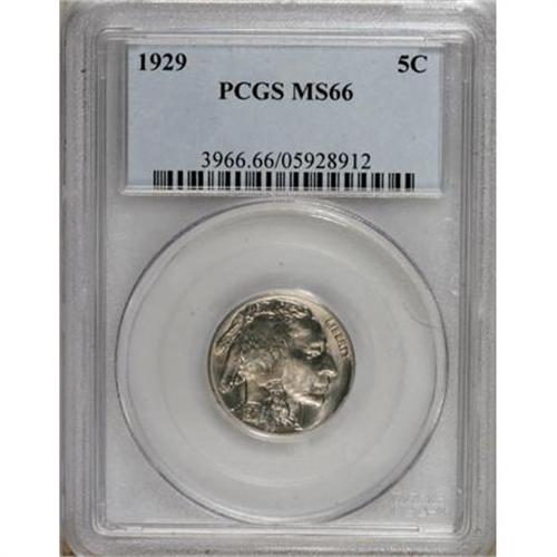 <B>1929 5C MS66 PCGS.</B></I> Well struck with swirling luster and carefully preserved fields. This pleasing nickel-gray P-mint piece hails from the year in which the Roaring Twenties gave way to the Great Depression. PCGS has graded only two finer representatives (7/07).<BR><BR><B>Coin Engraver:</B> James E. Fraser<BR><BR><b>Shipping:</b> Coins & Currency (<a target="_blank" href="http://www.heritageauctions.com/common/shipping.php">view shipping information</a>)