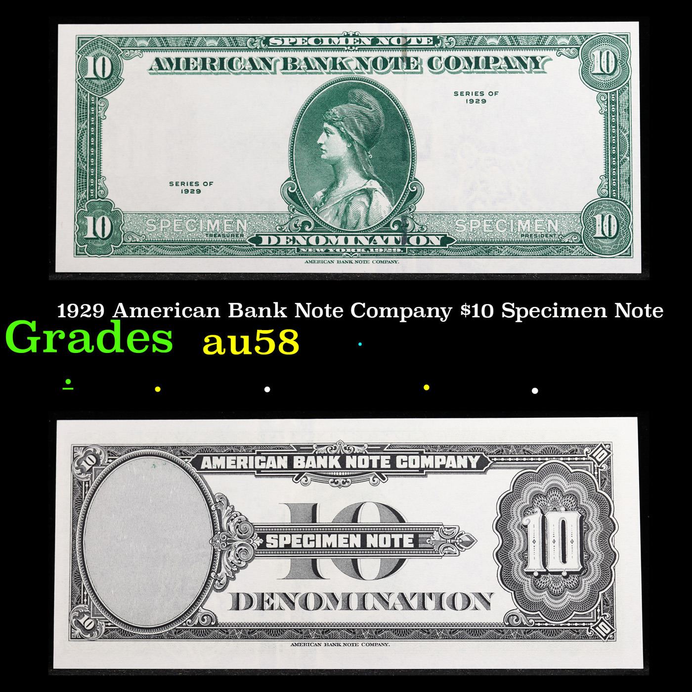 1929 American Bank Note Company $10 Specimen Note Grades Choice AU/BU Slider.