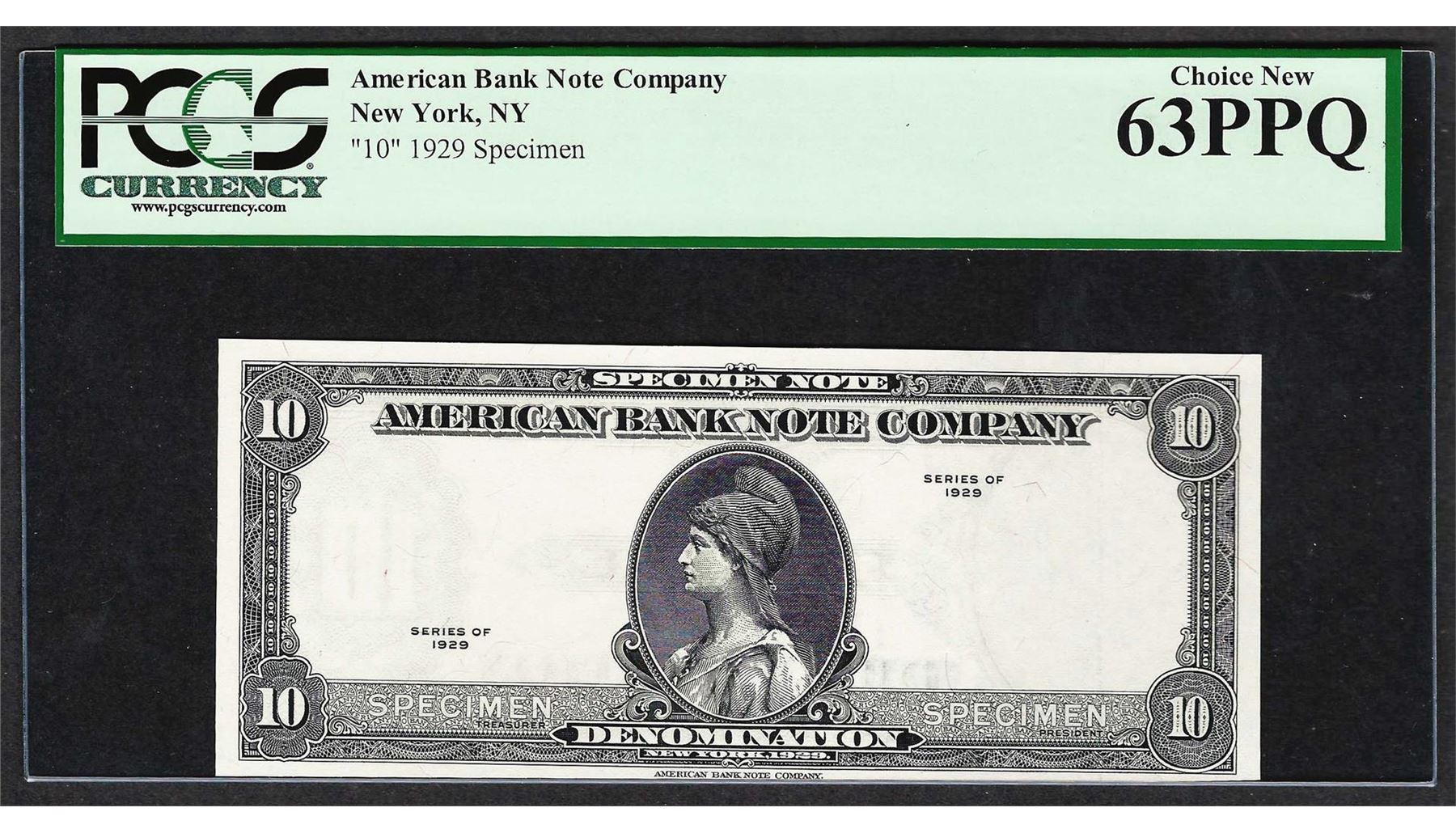 1929 American Bank Note Company Test Note 10 Units PCGS Choice New 63PPQ
