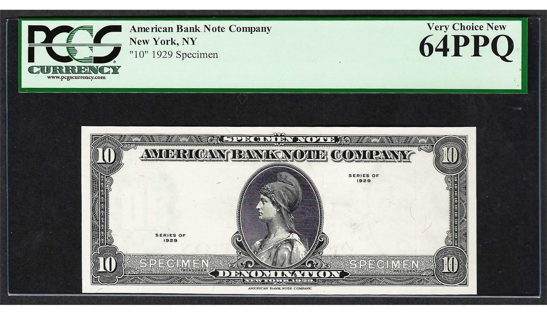 1929 American Bank Note Company Test Note 10 Units PCGS Very Choice New 64PPQ