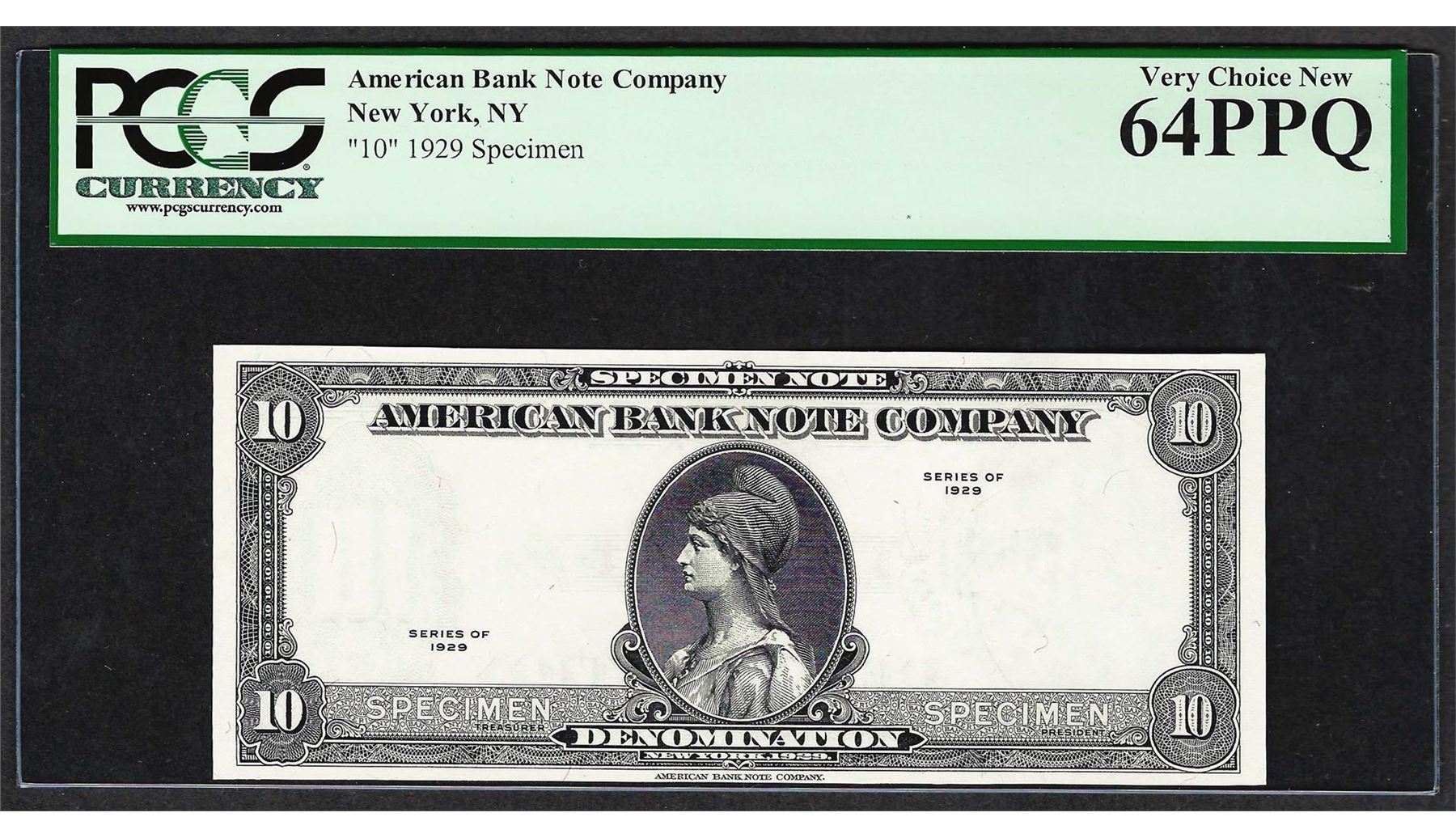 1929 American Bank Note Company Test Note 10 Units PCGS Very Choice New 64PPQ