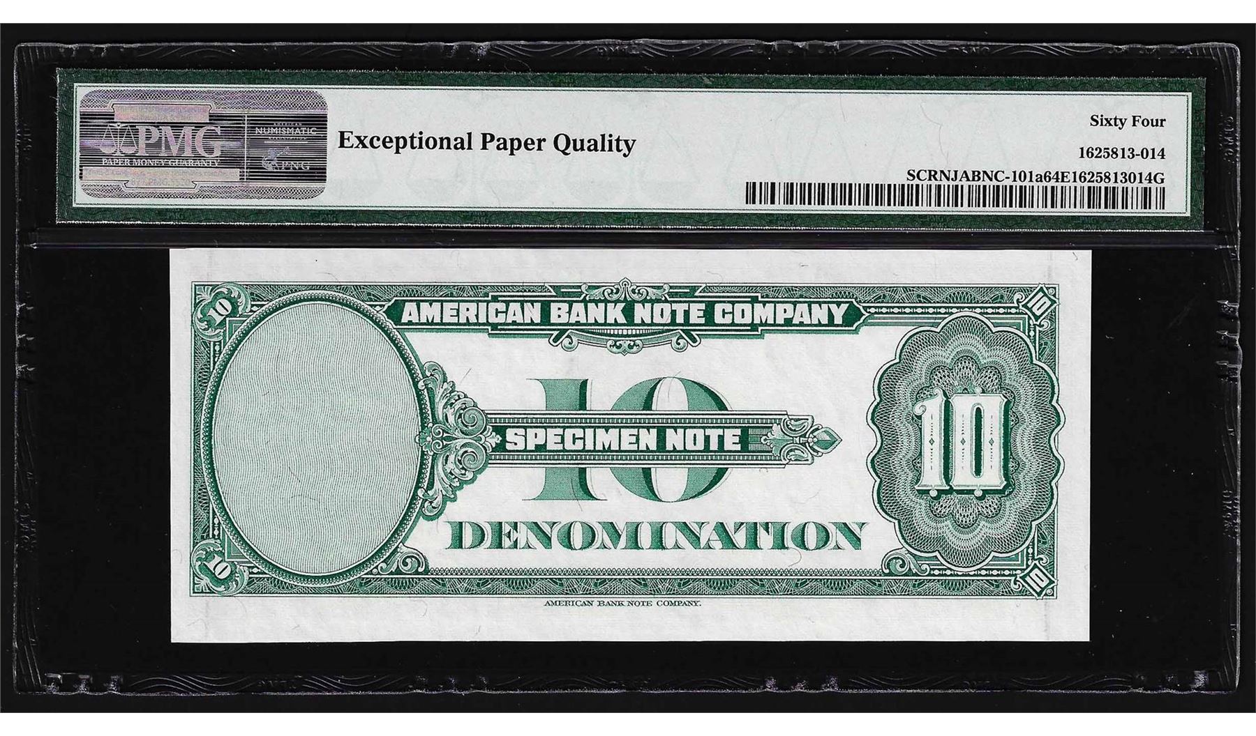 One 1929 American Bank Note Company Test Note 10 Units PMG 64EPQ. PMG Certified.