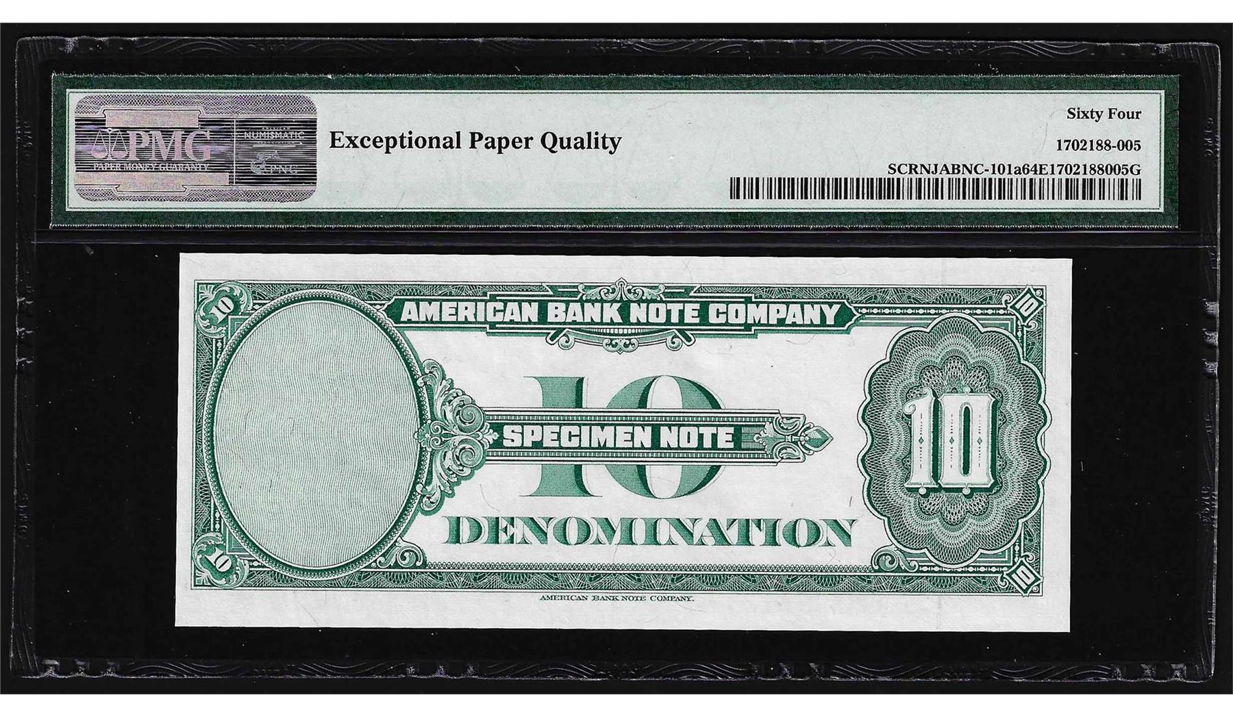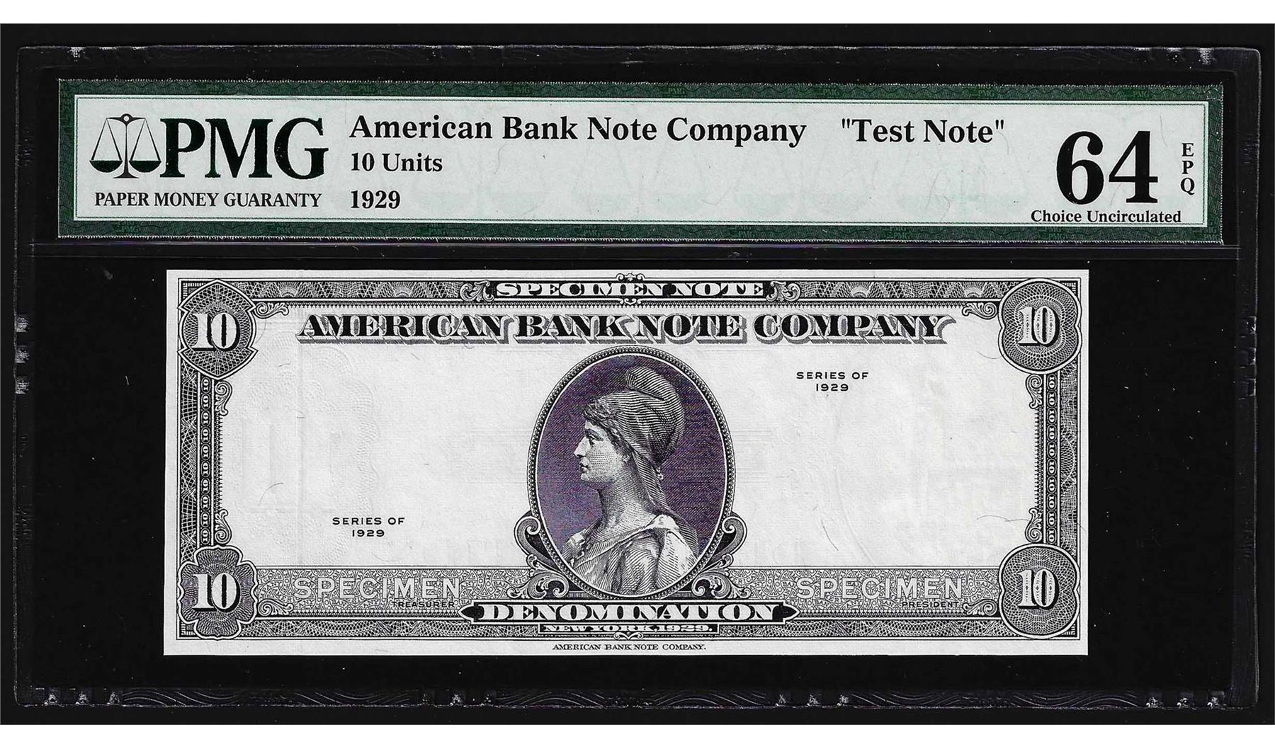 One 1929 American Bank Note Company Test Note 10 Units PMG 64EPQ. PMG Certified.