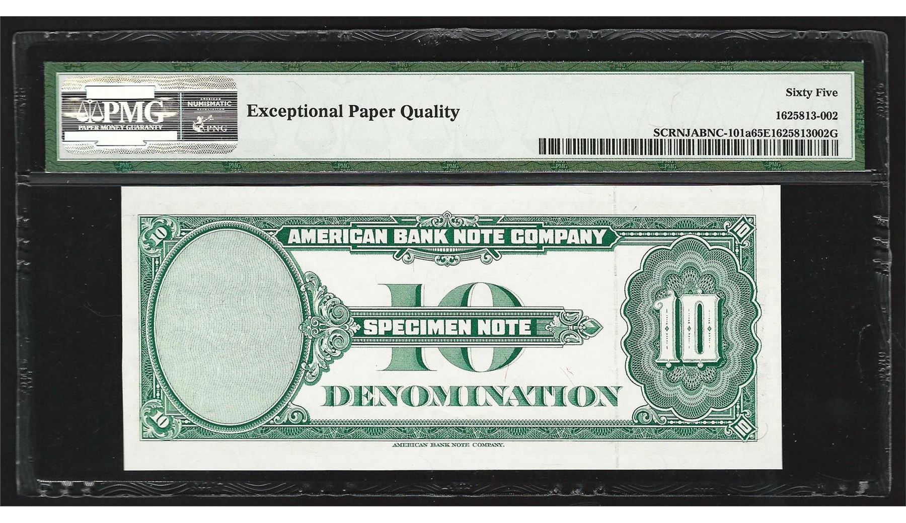 1929 American Bank Note Company Test Note 10 Units PMG Gem Uncirculated 65EPQ