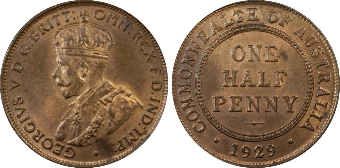 1929 Australian KGV Half Penny - PCGS MS 64RB