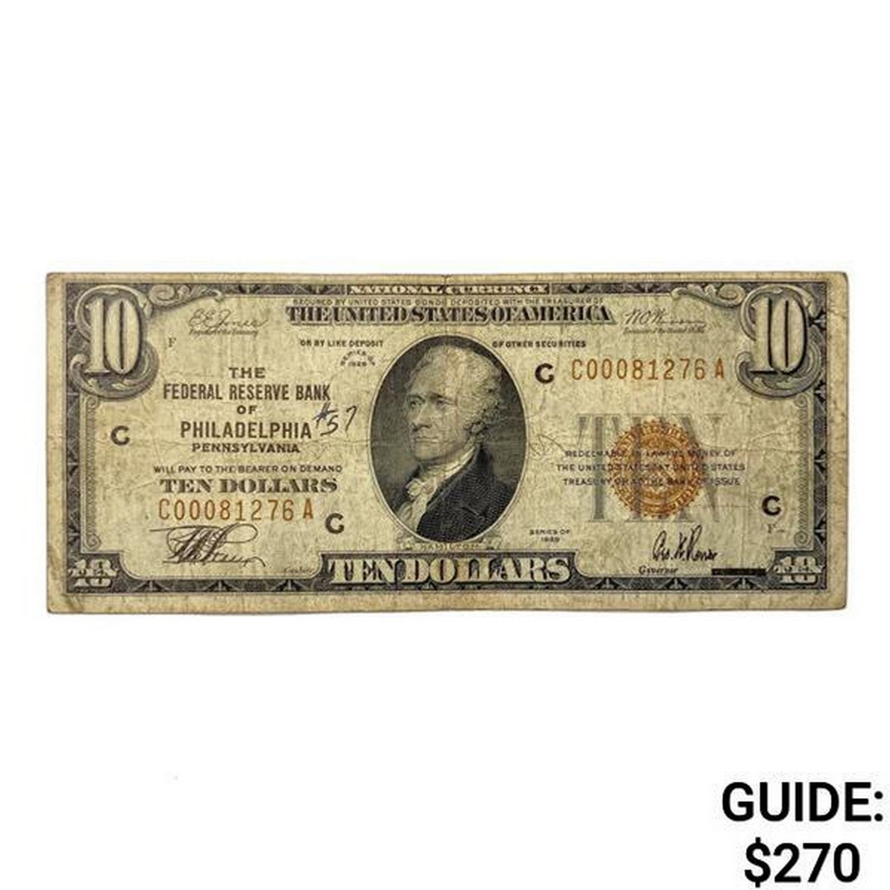 1929 B $10 US Philadelphia Bank, PA Fed Res Note