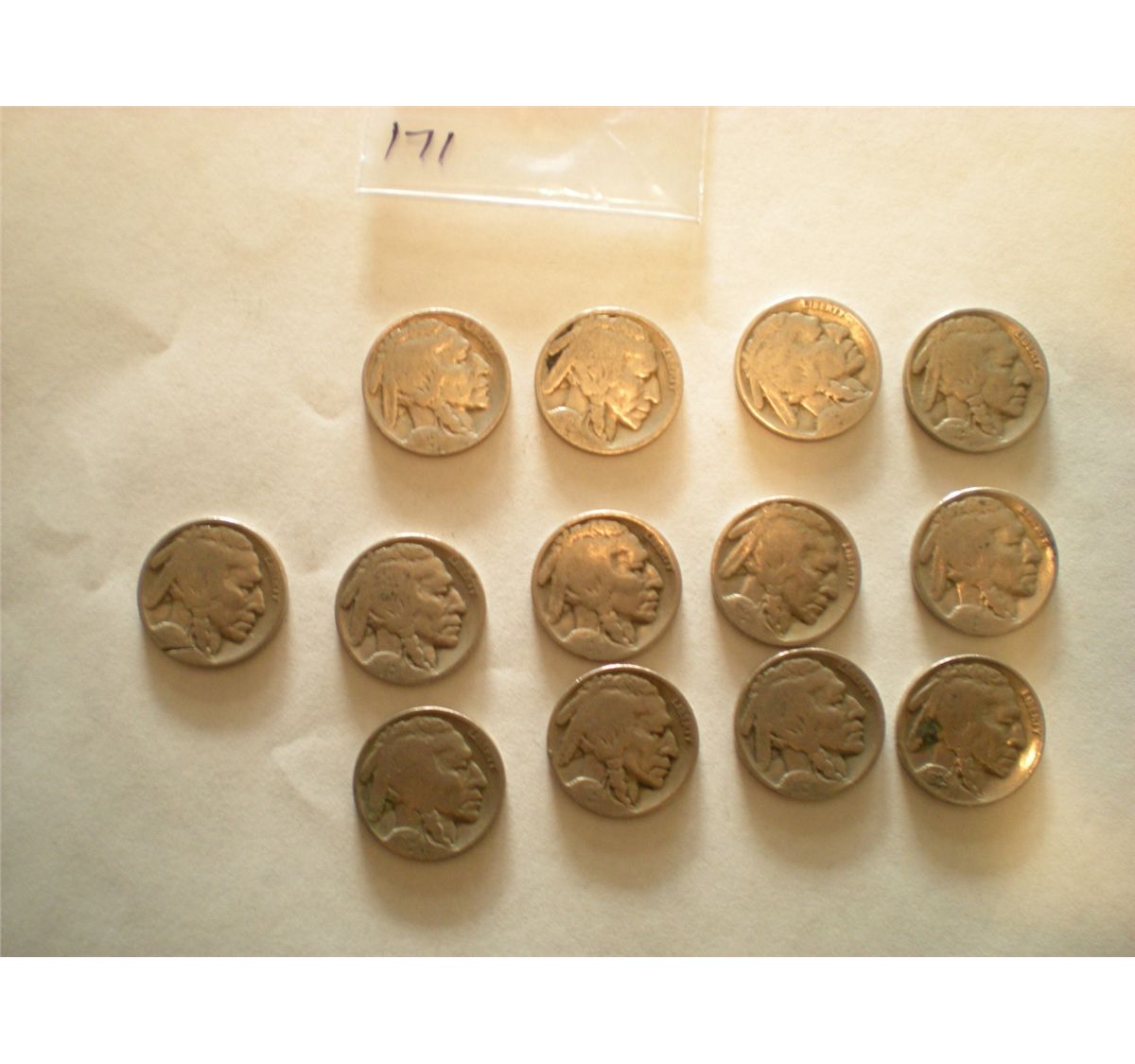 1929 Buffalo Nickels x13***Coin, Currency, Gemstones & All Items Listed in this auction along with their respective Grades, Conditions and Values are not T&T Auctions Responsibility. Every person has their own opinion. It is the responsibility of the buyer to examine, grade and value each item in this auction to their own satisfaction before they bid. Bidders shall rely entirely on their own inspection and information before bidding.