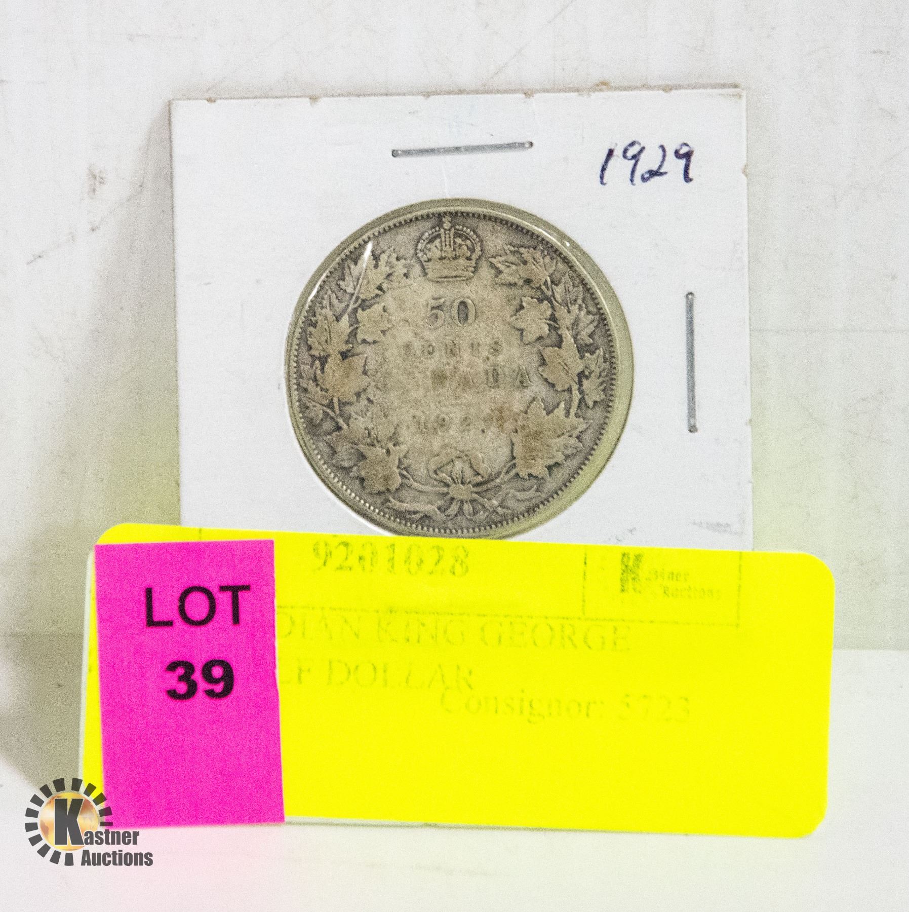 1929 CANADIAN KING GEORGE SILVER HALF DOLLAR