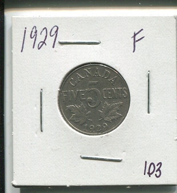 1929,Canadian 5 cent coin,King George V