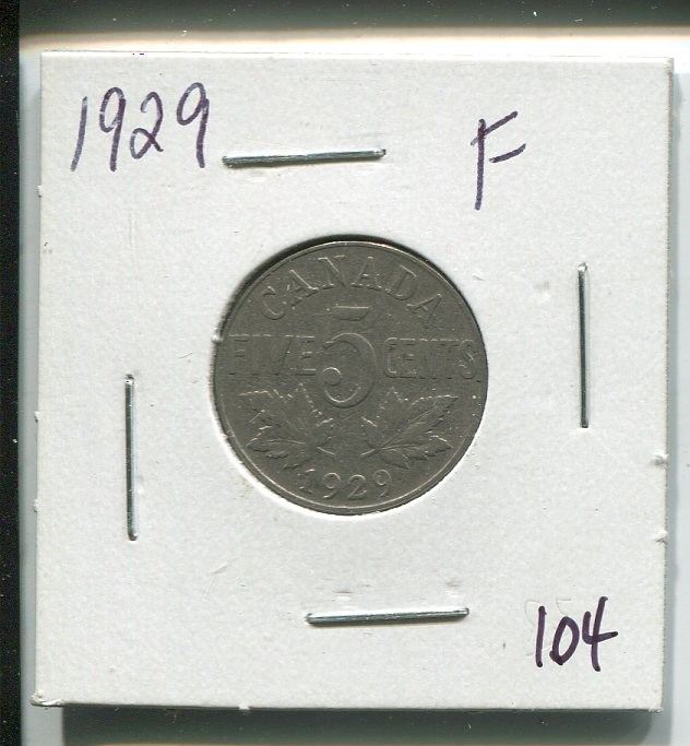1929,Canadian 5 cent coin,King George V