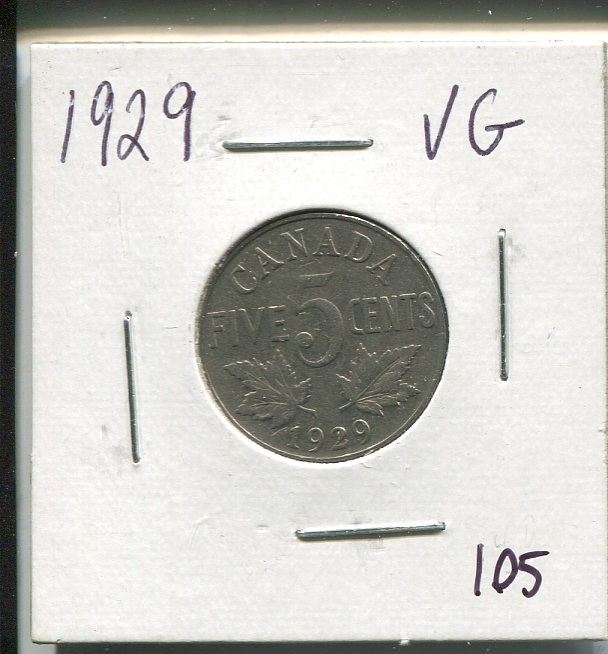 1929,Canadian 5 cent coin,King George V