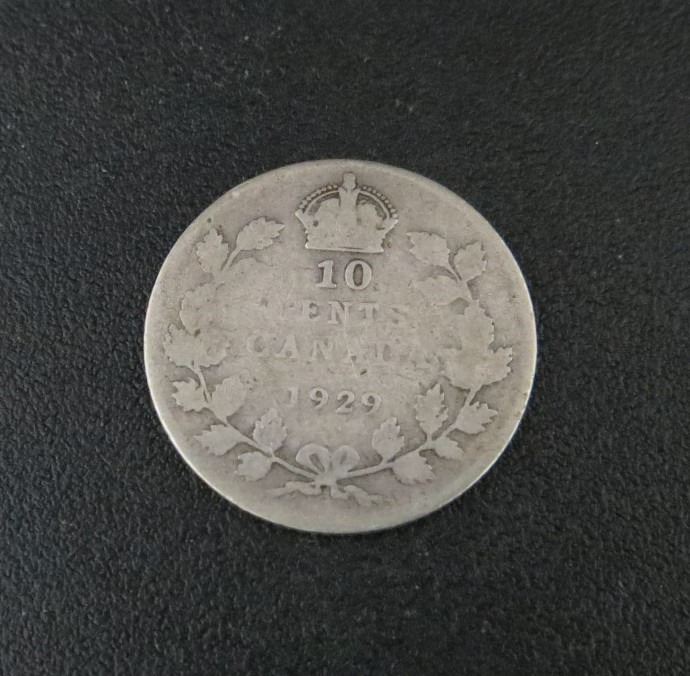 1929 Canadian Silver 10 Cent Coin