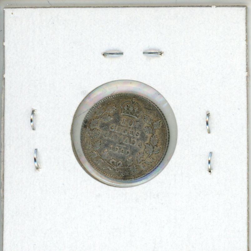 1929 Canadian Silver 10 Cents. Issued during the first year of the Great Depression. VF-30. Nice.