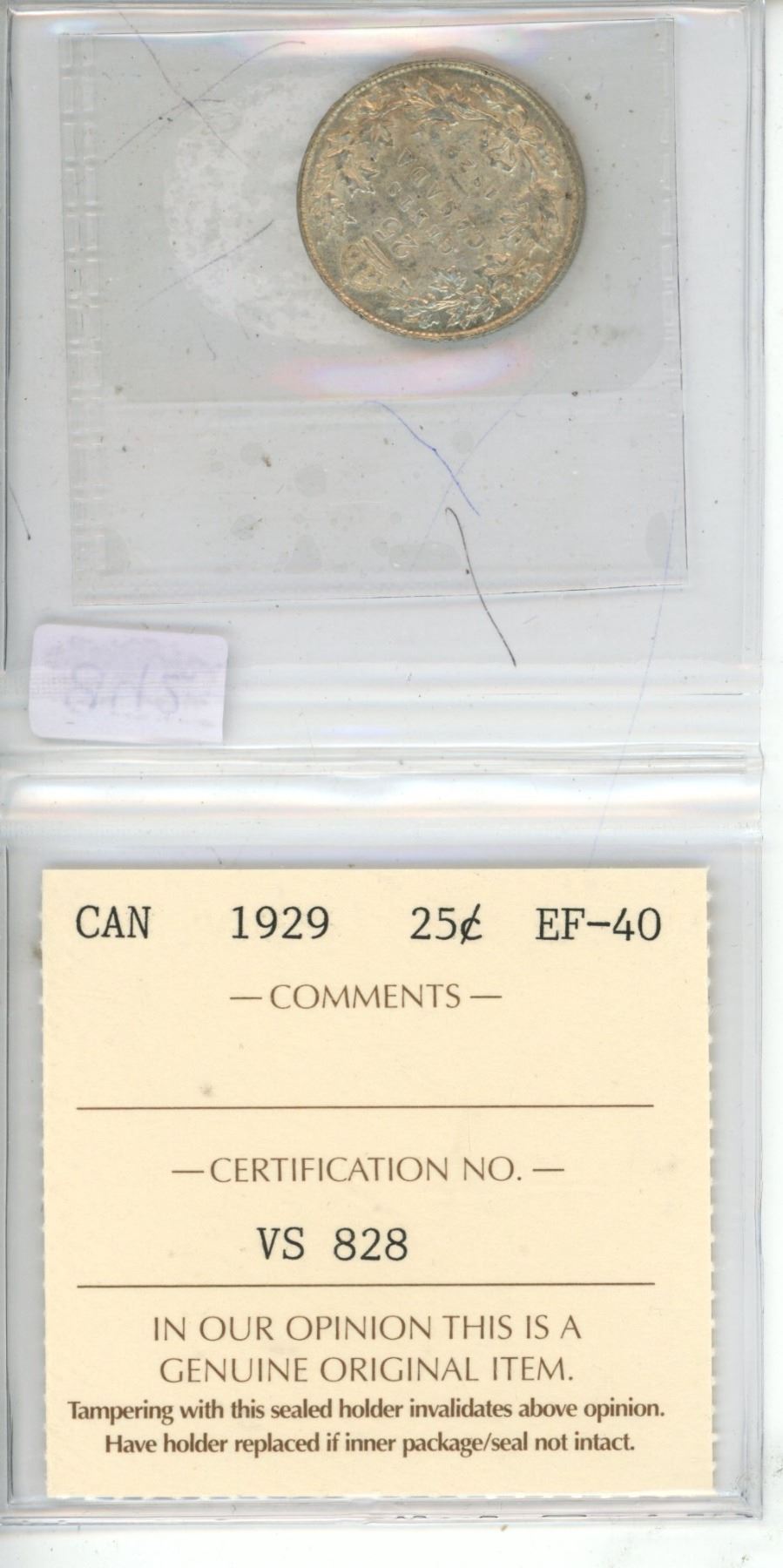 1929 Canadian Twenty-Five Cent - ICCS Graded - EF40