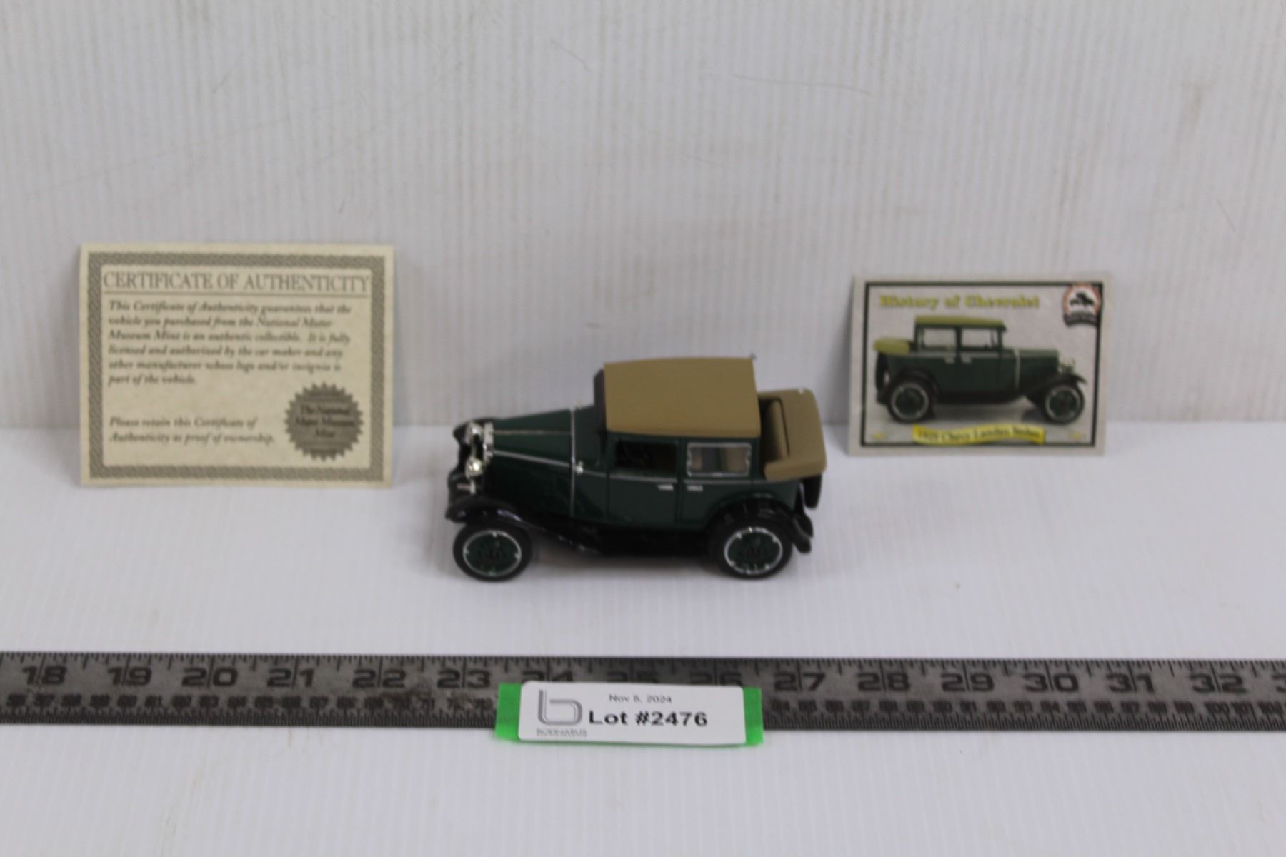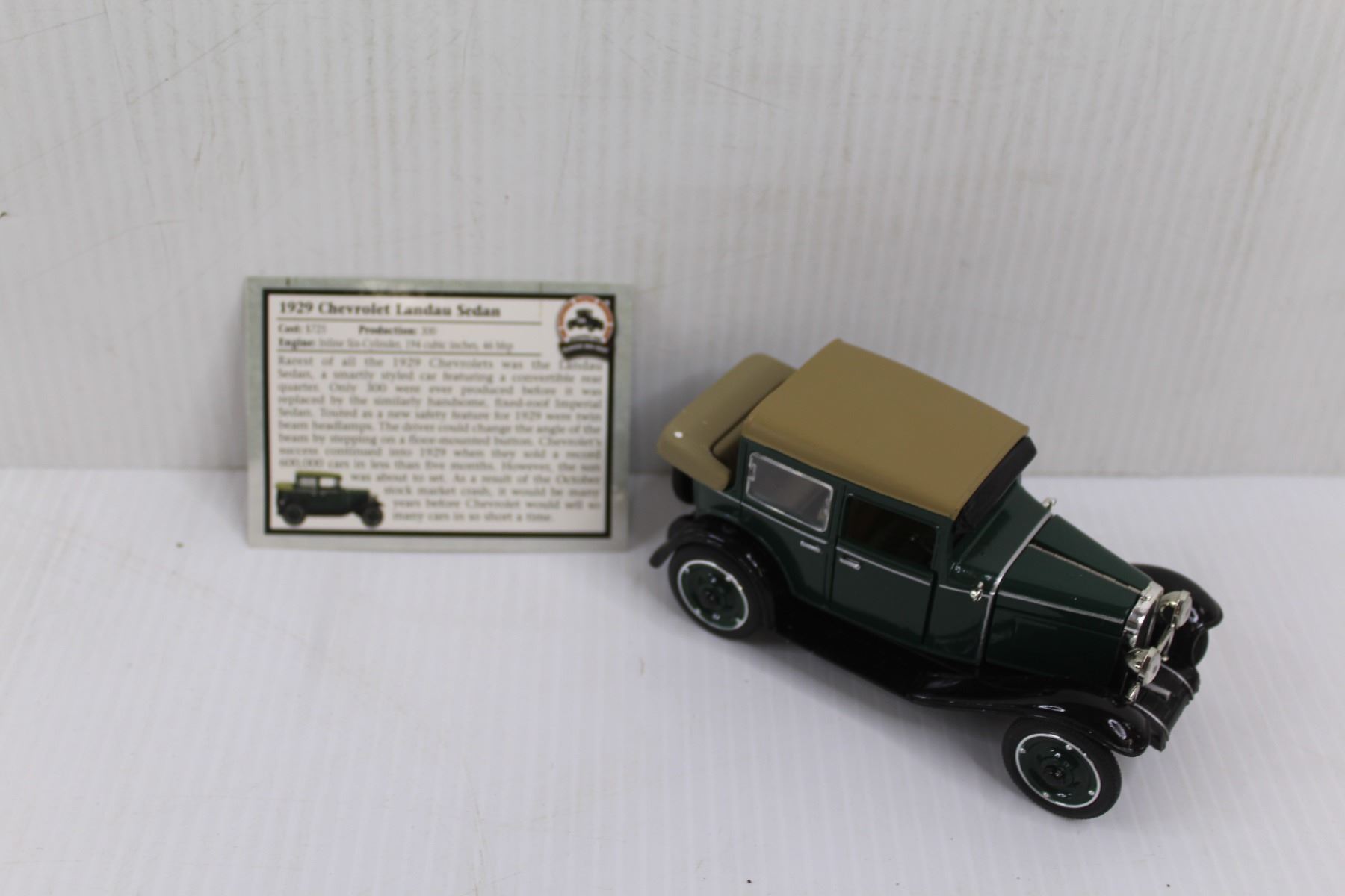 1929 Chevy Landau Sedan Model w/ Styrofoam Case & Certificate of Authenticity
