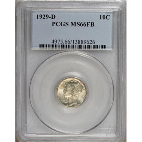 <B>1929-D 10C MS66 Full Bands PCGS.</B></I> PCGS Population (94/29). NGC Census: (70/1). Mintage: 5,034,000. Numismedia Wsl. Price for NGC/PCGS coin in MS66: $444. (#4975)<BR><BR><B>Coin Engraver:</B> Adolph A. Weinman<BR><BR><b>Shipping:</b> Coins & Currency (<a target="_blank" href="http://www.heritageauctions.com/common/shipping.php">view shipping information</a>)