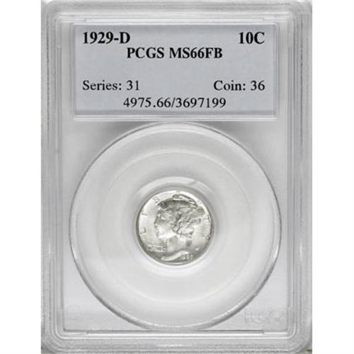 <B>1929-D 10C MS66 Full Bands PCGS.</B></I> PCGS Population (91/29). NGC Census: (67/1). Mintage: 5,034,000. Numismedia Wsl. Price for NGC/PCGS coin in MS66: $400. (#4975)<BR><BR><B>Coin Engraver:</B> Adolph A. Weinman<BR><BR><b>Shipping:</b> Coins & Currency (<a target="_blank" href="http://www.heritageauctions.com/common/shipping.php">view shipping information</a>)