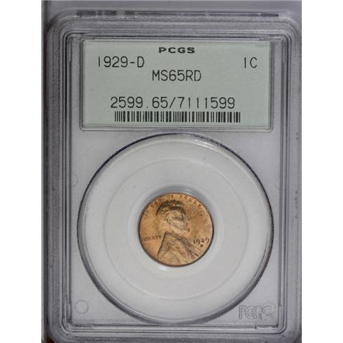 <B>1929-D<1C> MS65 Red PCGS.</B></I> A shimmering brick-red example with clean, luminous fields. An inconspicuous ejection mark is concealed within Lincoln's hair. Certified in an old green label holder.<BR><I>From The Tigard Oregon Small Cent Collection.</B></I>