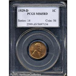 <B>1929-D 1C MS65 Red PCGS.</B></I> Quite frosty with rich coppery-orange coloration. A shallow lamination beneath BE in LIBERTY is easily overlooked. Lot:5512