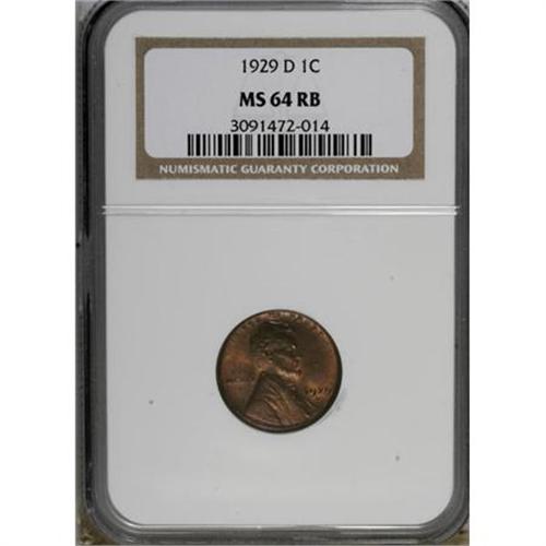 <B>1929-D 1C MS64 Red and Brown NGC.</B></I> NGC Census: (49/28). PCGS Population (59/6). Mintage: 41,730,000. Numismedia Wsl. Price for NGC/PCGS coin in MS64: $42. (#2598)<BR><BR><B>Coin Engraver:</B> Victor D. Brenner<BR><BR><b>Shipping:</b> Coins & Currency (<a target="_blank" href="http://www.heritageauctions.com/common/shipping.php">view shipping information</a>)