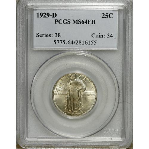 <B>1929-D 25C MS64 Full Head PCGS.</B></I> Barely discernible freckles of light tan color run over the obverse, while the reverse takes on deeper shades of dappled lavender and sky-blue around the borders. Well struck, with just a few trivial handling marks. Population: 55 in 64 Full Head, 46 finer (1/07).<BR><BR><b>Shipping:</b> Coins & Currency (<a target="_blank" href="http://www.heritageauctions.com/common/shipping.php">view shipping information</a>)